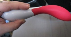Showing the curve of the Mona and how I hold it during use – my thumb naturally rests just below the buttons, and I don’t accidentally press them much during use